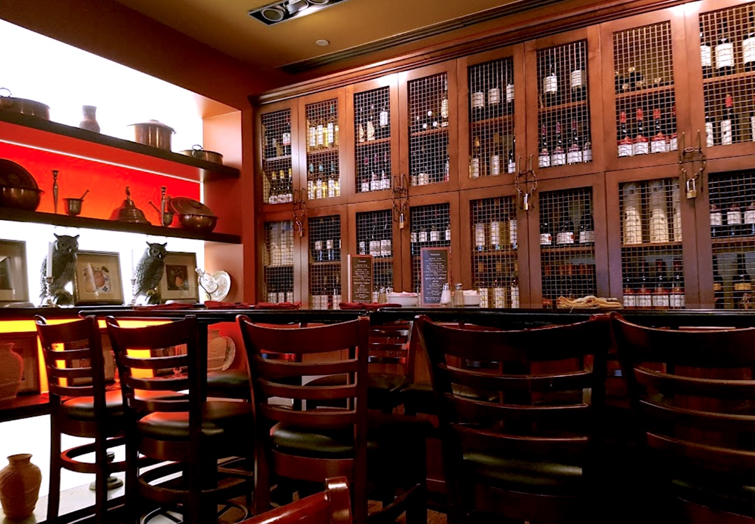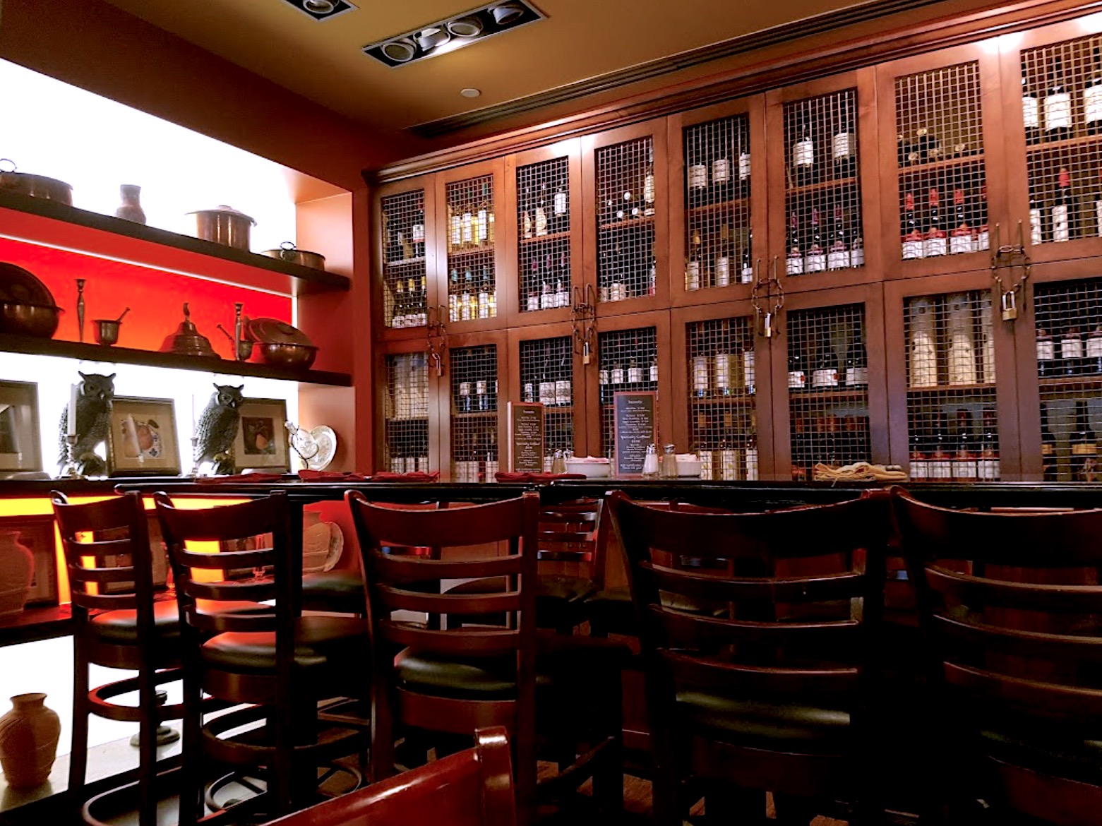 A mahogany wine bar, and custom cabinets for Scoozis restaurant in Vancouver.