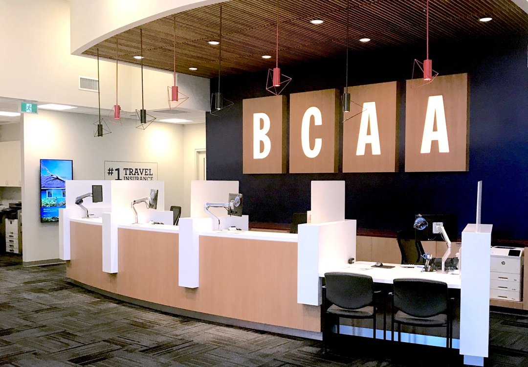 We are proud to showcase our millwork in all BCAA offices in BC. Office desks, service counters, greeters desks, signage, kitchens, bathrooms, doors and windows.